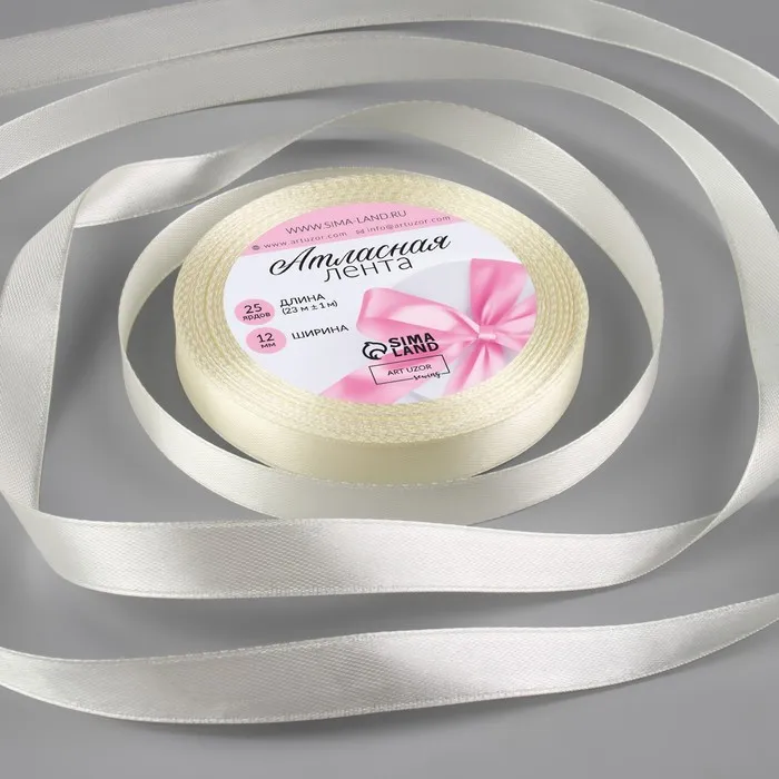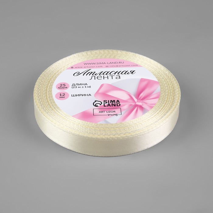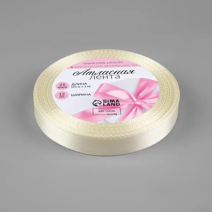 Лента атласная, 12 мм × 23 ± 1 м, цвет сливочный №02 — Характеристики