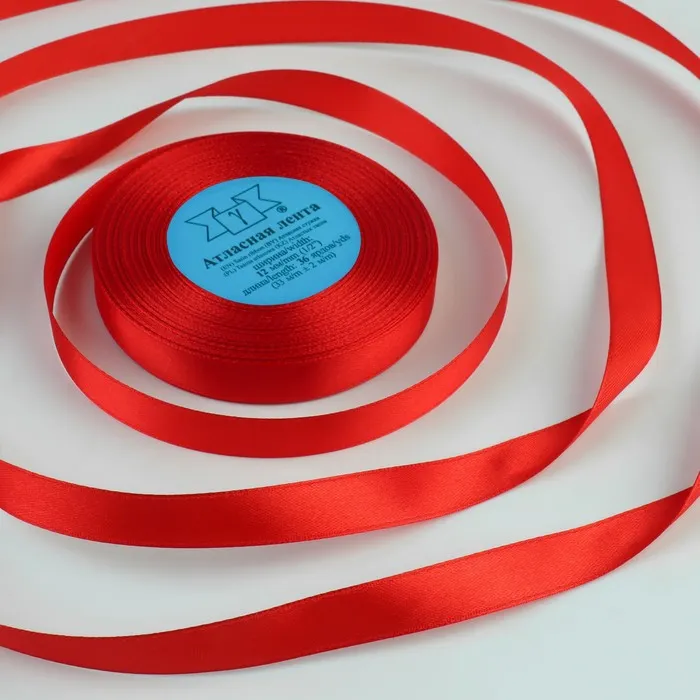 Лента атласная, 12 мм × 33 ± 2 м, цвет красный №026 — Характеристики