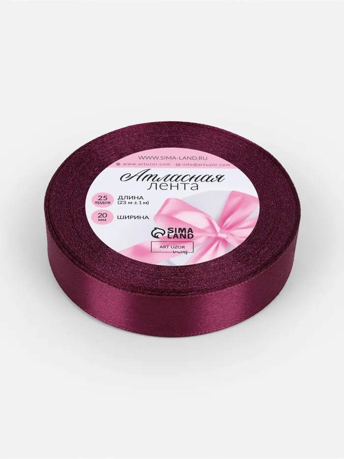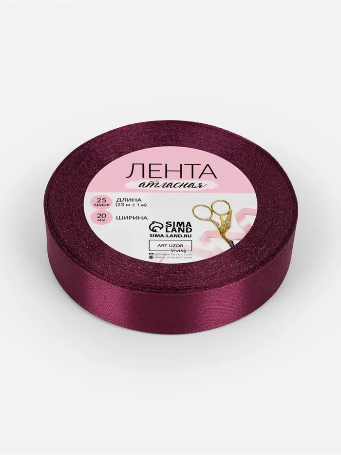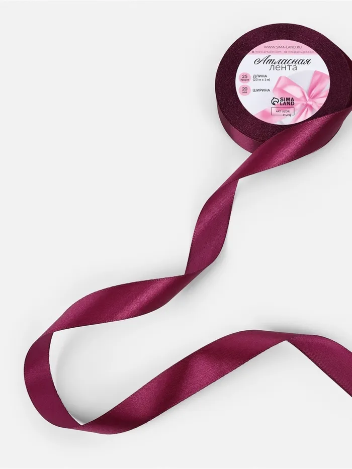 Лента атласная, 20 мм, 23±1 м, баклажановая №252 — Характеристики