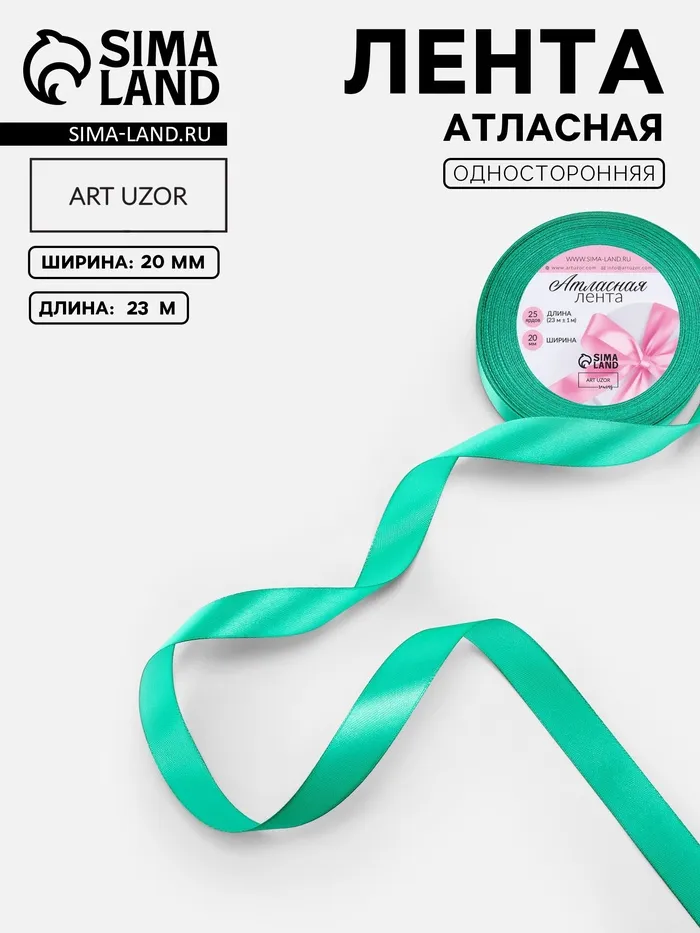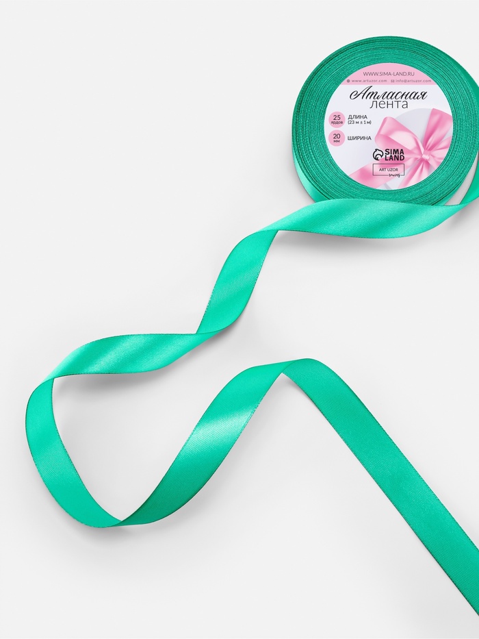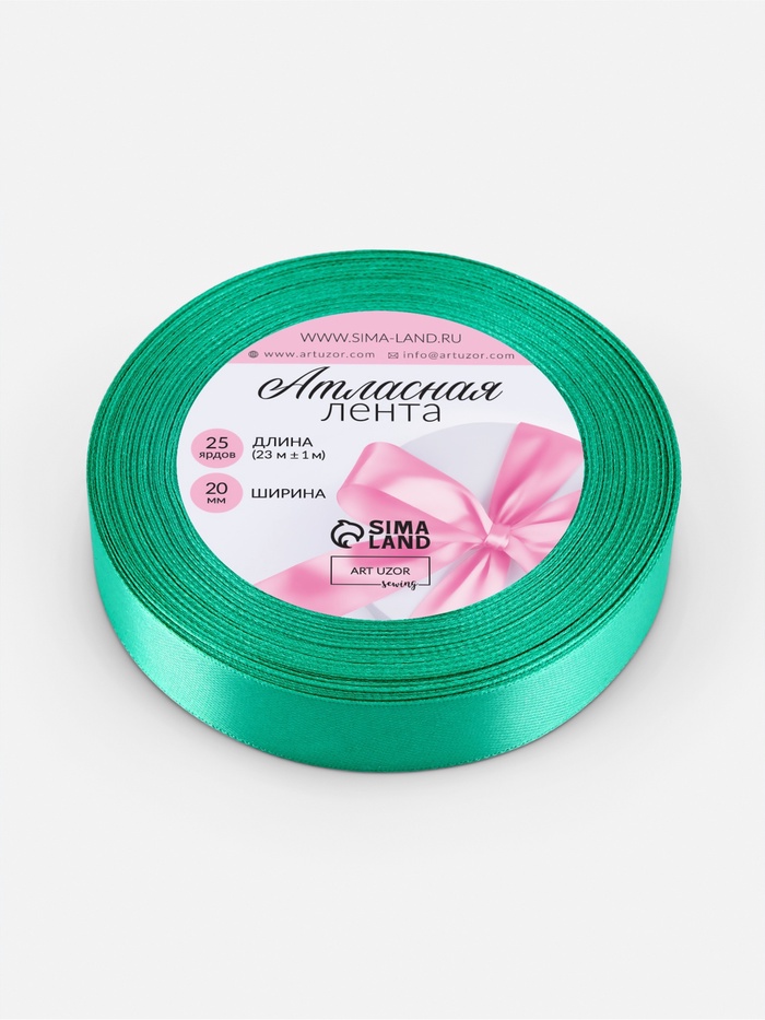 Лента атласная, 20 мм, 23±1 м, бирюзовая №54 — Характеристики