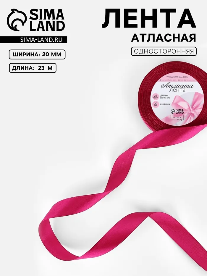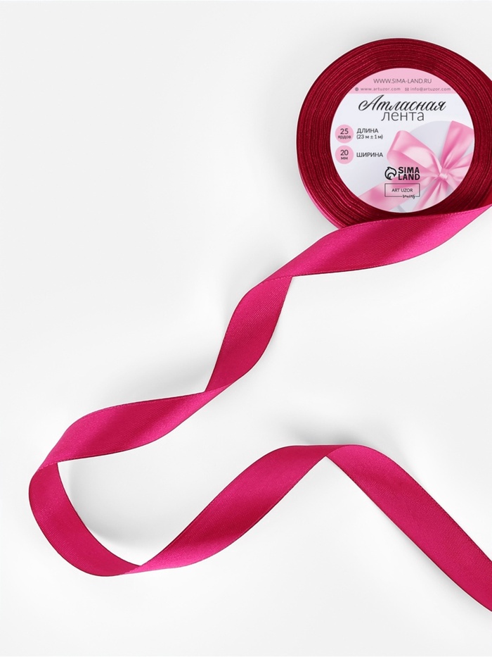 Лента атласная, 20 мм, 23±1 м, ярко-розовая №27 — Характеристики