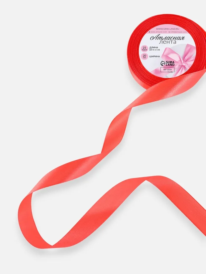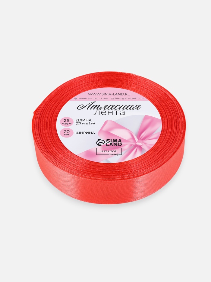 Лента атласная, 20 мм, 23±1 м, коралловая №129 — Характеристики