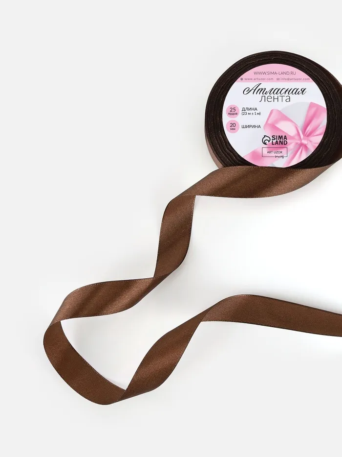 Лента атласная, 20 мм, 23±1 м, коричневая №31 — Характеристики