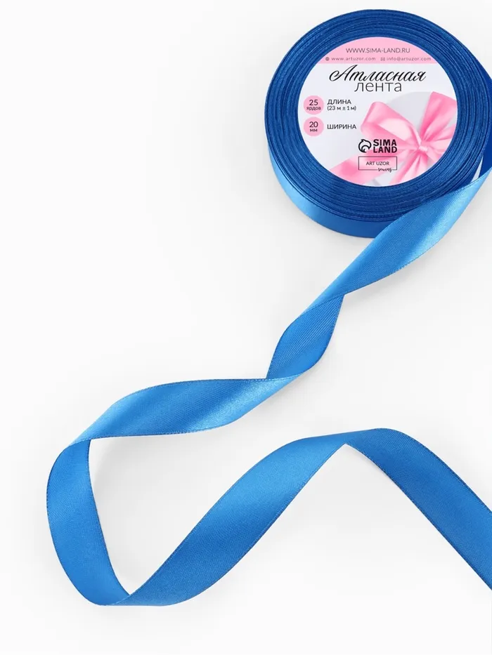 Лента атласная, 20 мм, 23±1 м, лазурно-синяя №97 — Характеристики