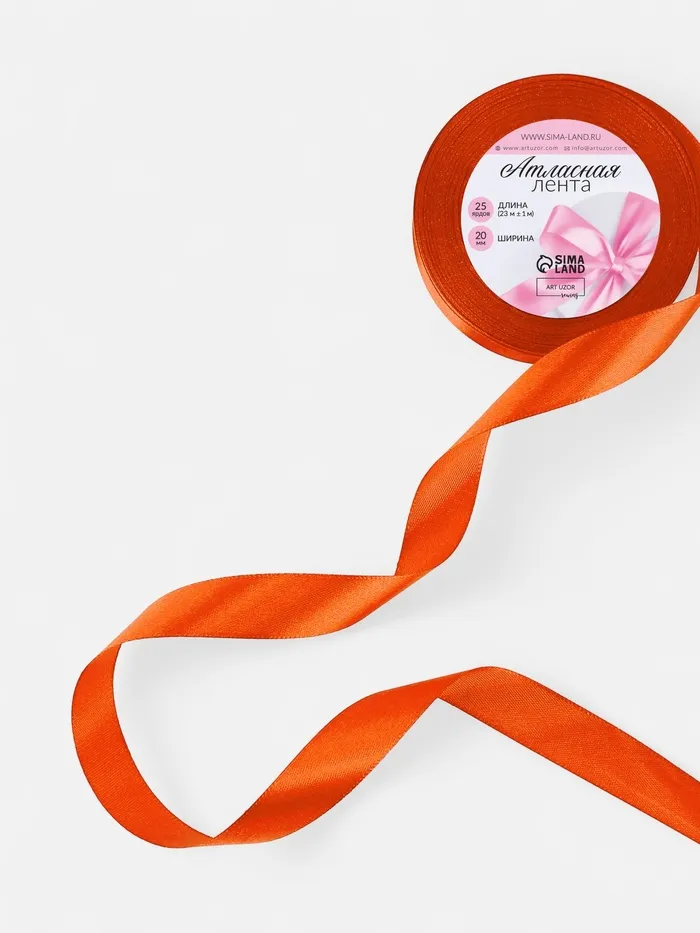 Лента атласная, 20 мм, 23±1 м, оранжевая №164 — Характеристики