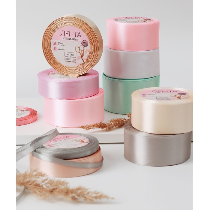 Атласная лента гладкая и приятная на ощупь. Используйте её для отделки изделий, украшения подарков, свадебного оформления, а также в техниках скрапбукинг и канзаши.