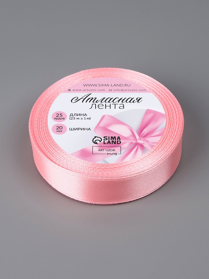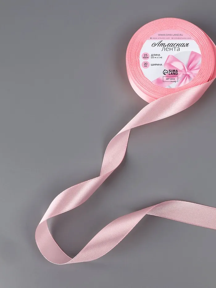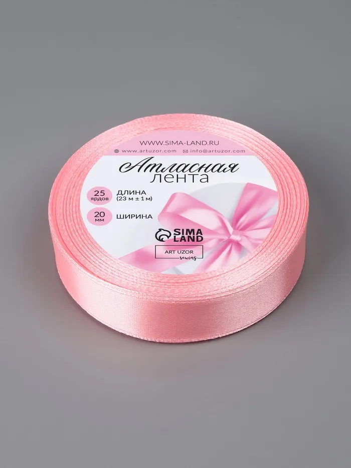 Лента атласная, 20 мм, 23±1 м, розовая №04 — Характеристики