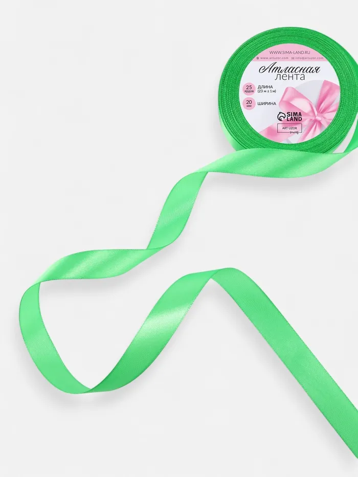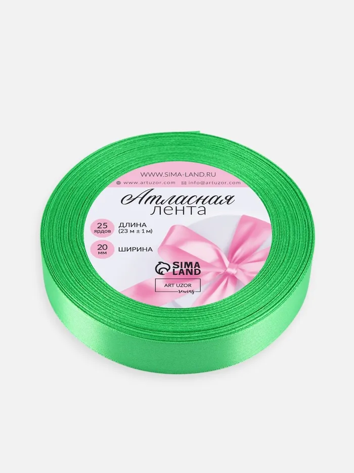 Лента атласная, 20 мм, 23±1 м, салатовый №230 — Характеристики