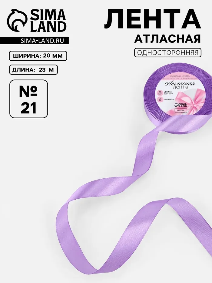 Лента атласная, 20 мм, 23±1 м, сиреневая №21 — Характеристики