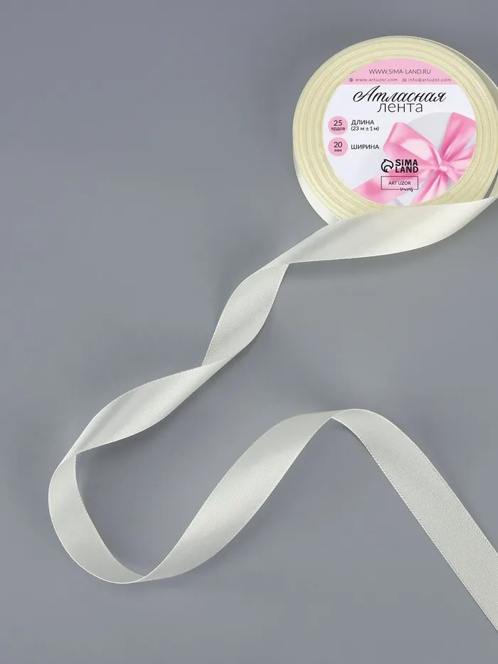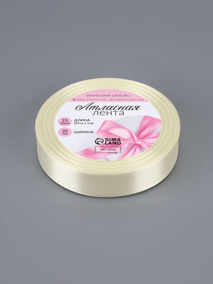 Лента атласная, 20 мм, 23±1 м, сливочная №02 — Характеристики