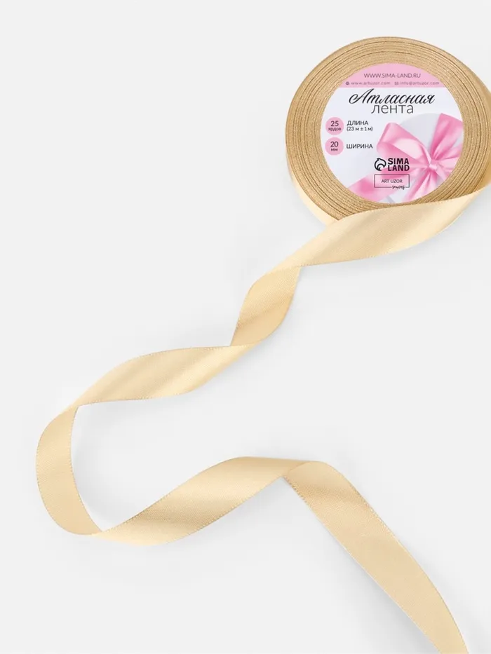 Лента атласная, 20 мм, 23±1 м, светло-бежевая — Характеристики
