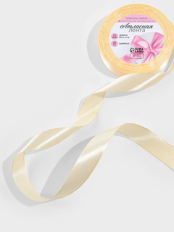 Создайте акцент в деталях! Атласная лента 20 мм, светло-бежевая универсальный материал для декора, упаковки и рукоделия. Легкая, прочная и приятная на ощупь, она подчеркнёт изысканность любого подарка или изделия.