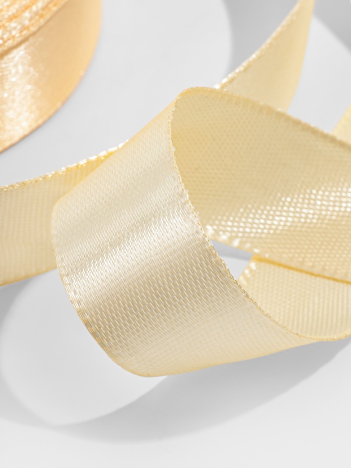 - Односторонняя текстура: Лицевая сторона блестит, придавая изделию дорогой вид. Изнанка матовая это удобно при создании объёмных композиций, где часть ленты остаётся незаметной.