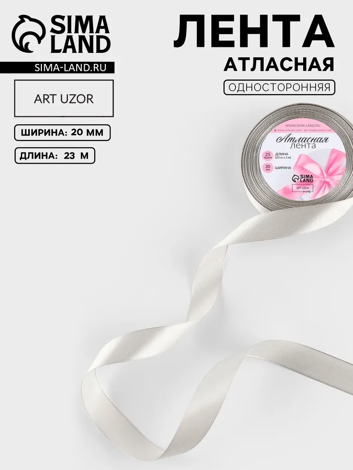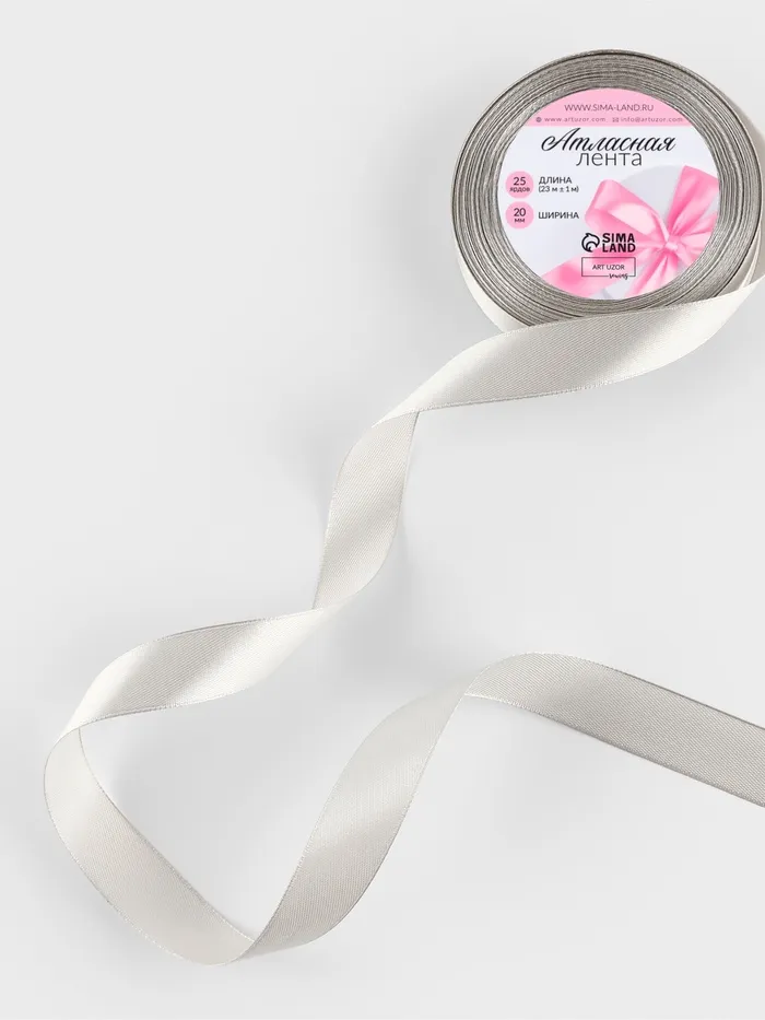 Лента атласная, 20 мм, 23±1 м, светло-серая №179 — Характеристики