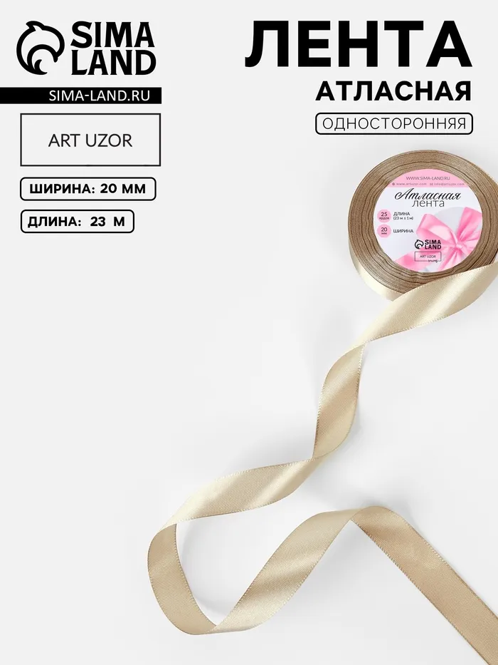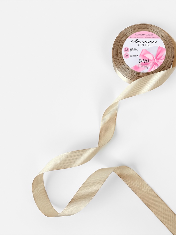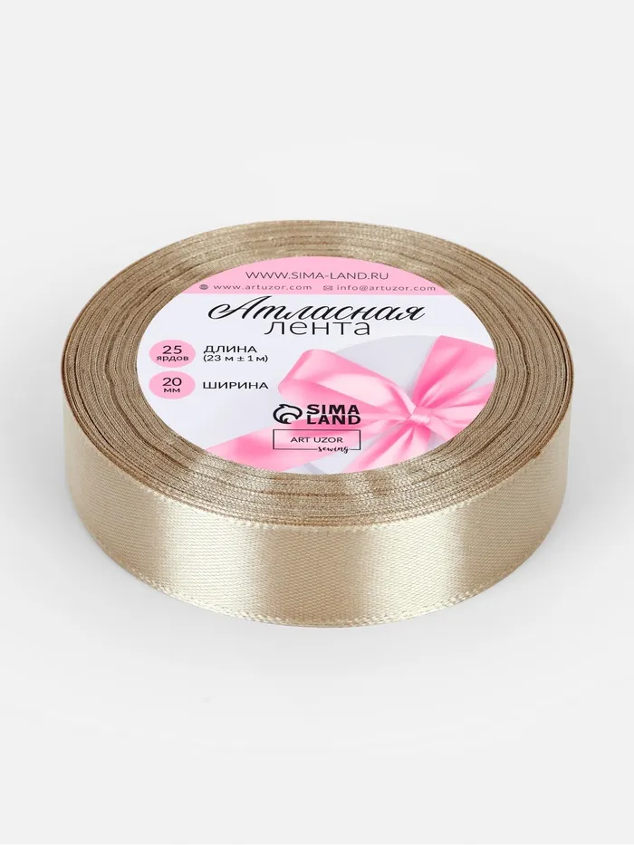 Лента атласная, 20 мм, 23±1 м, тёмно-кремовая №268 — Характеристики