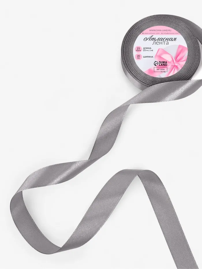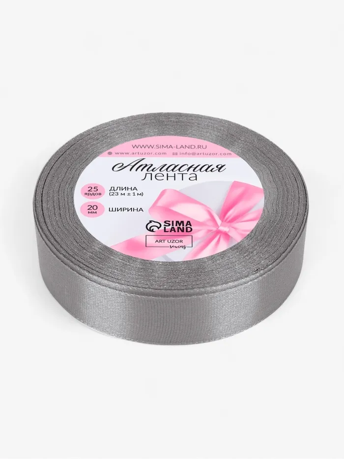 Лента атласная, 20 мм, 23±1 м, тёмно-серая №180 — Характеристики