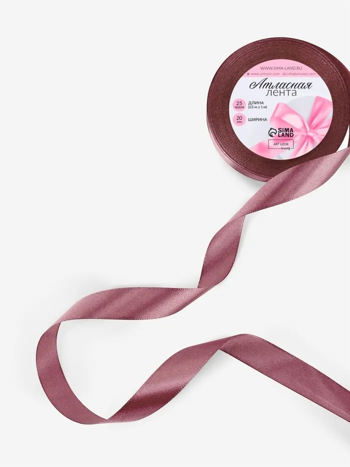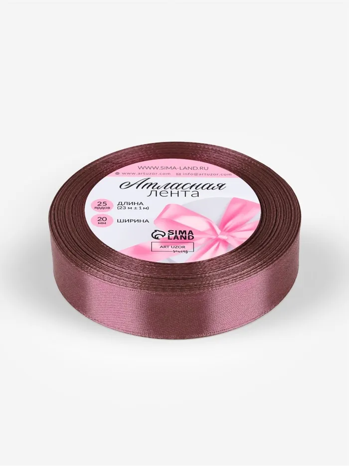 Лента атласная, 20 мм, 23±1 м, цвет бурый №284 — Характеристики