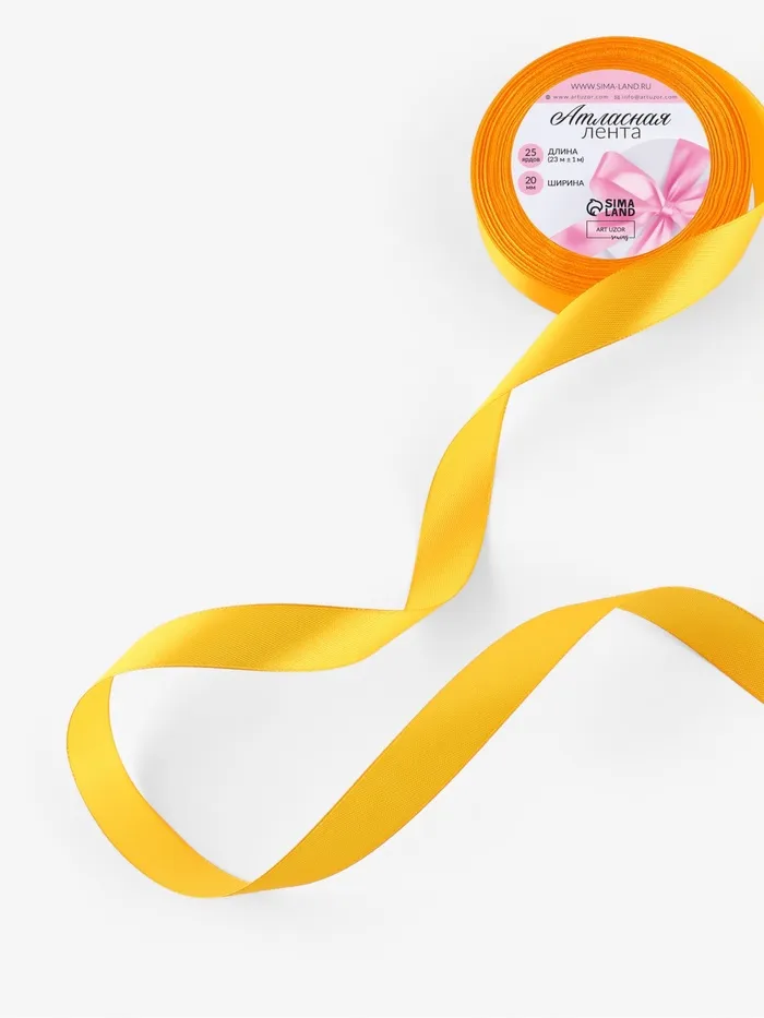 Лента атласная, 20 мм, 23±1 м, жёлто-оранжевая №17 — Характеристики