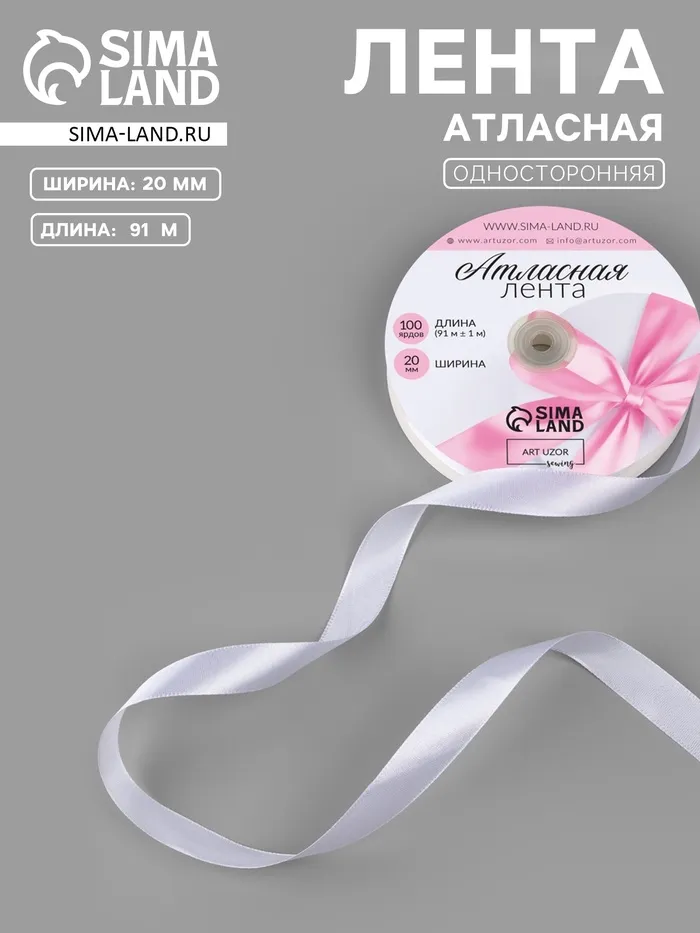 Лента атласная, 20 мм, 91±1 м, белая №01 — Характеристики