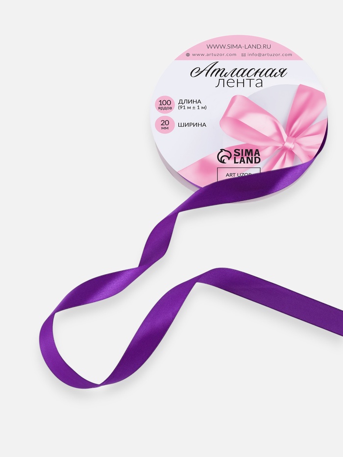 Лента атласная, 20 мм, 91±1 м, фиолетовая №34 — Характеристики