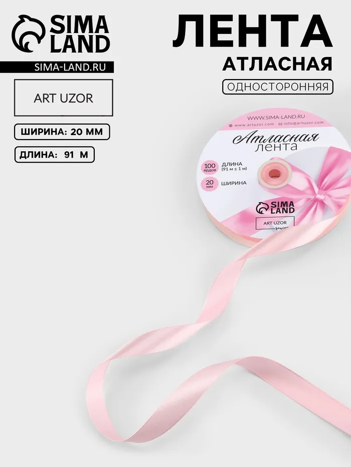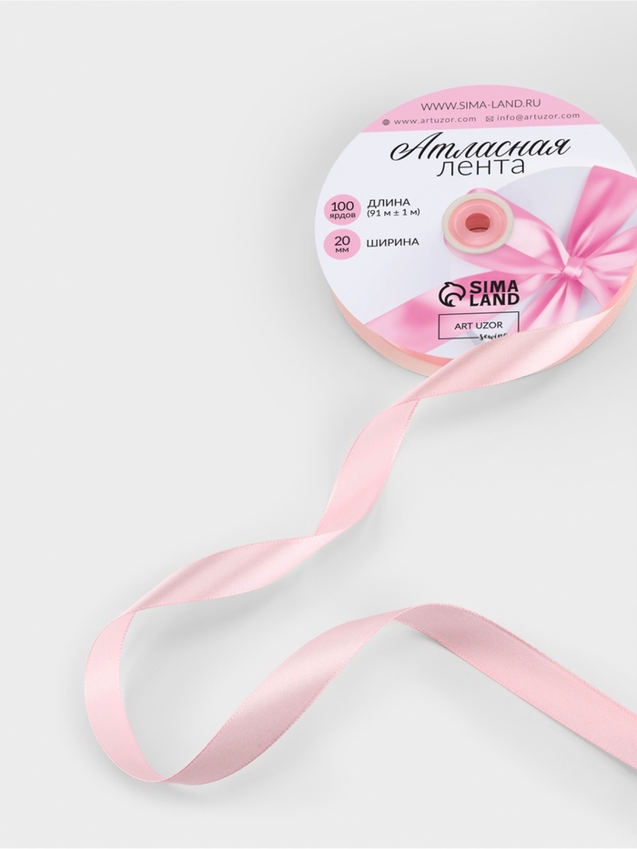 Лента атласная, 20 мм, 91±1 м, розовая №04 — Характеристики