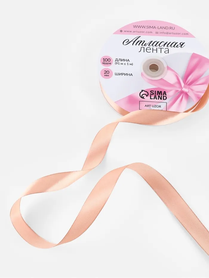 Атласная лента гладкая и приятная на ощупь. Используйте её для отделки изделий, украшения подарков, в свадебном оформлении, а также в скрапбукинге и канзаши.