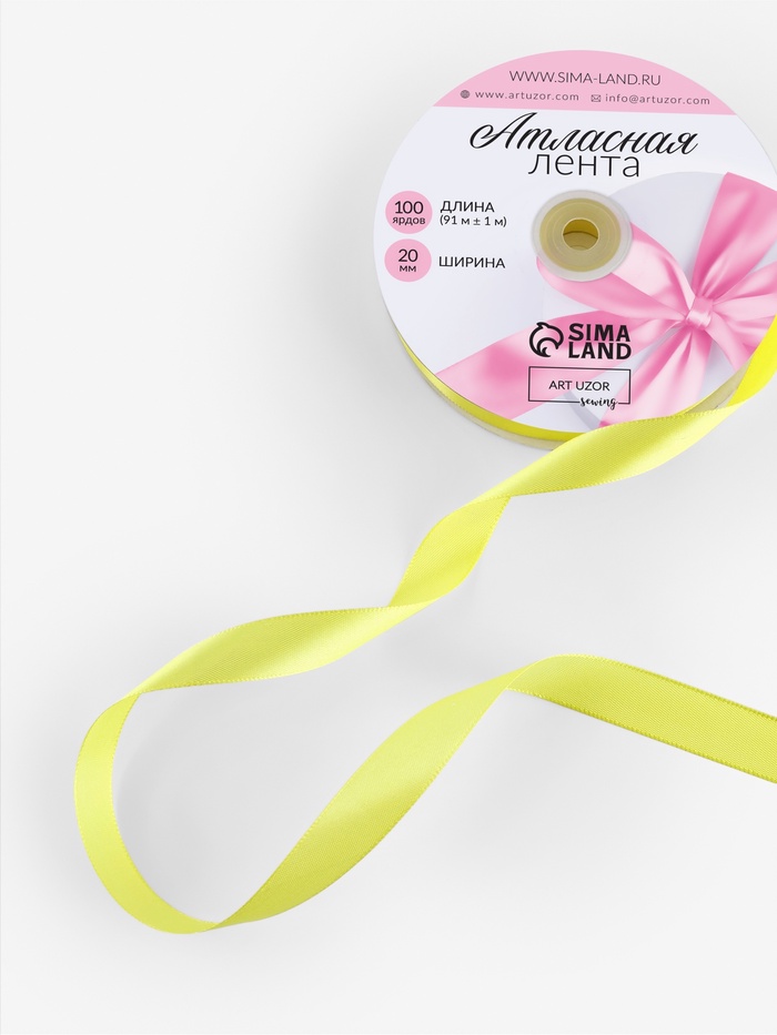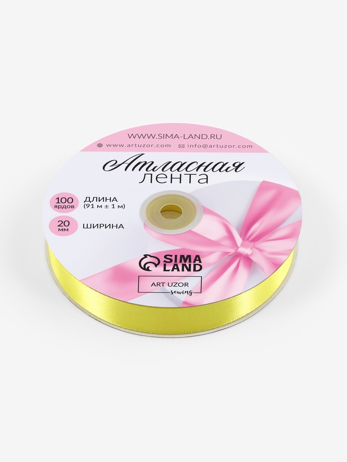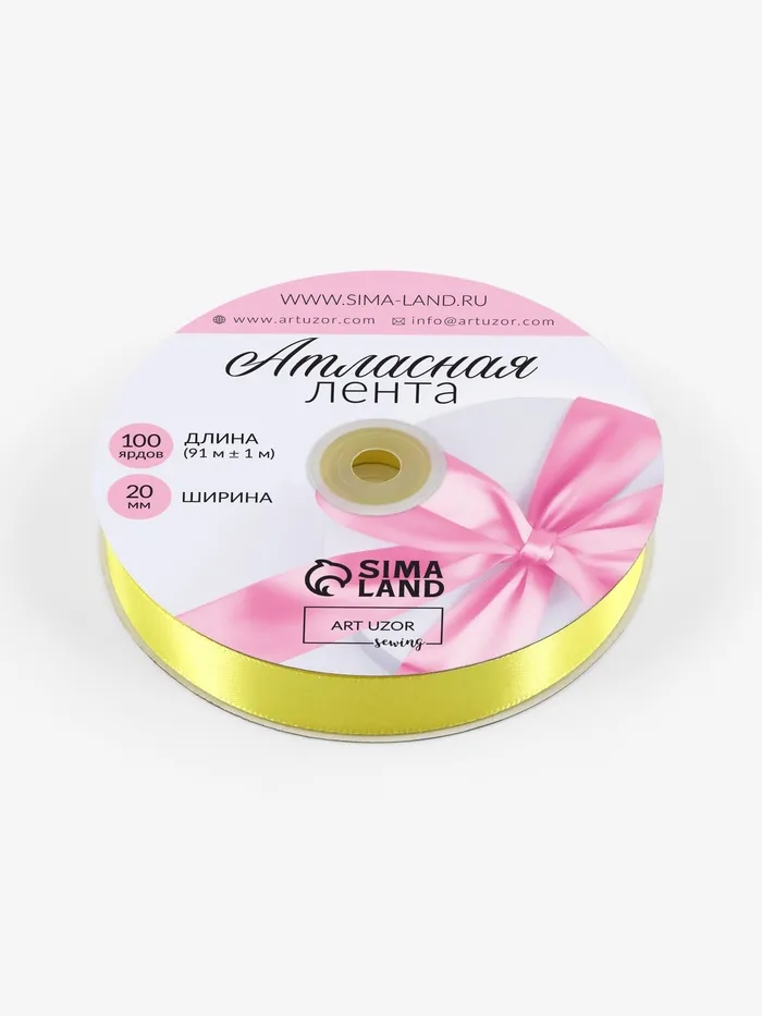 Лента атласная, 20 мм, 91±1 м, жёлтая №15 — Характеристики