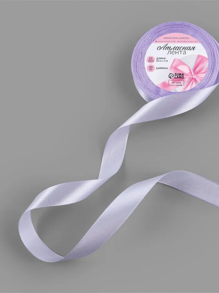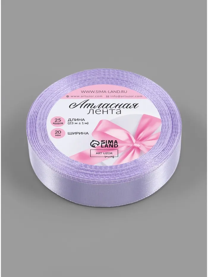 Лента атласная, 20 мм × 23 ± 1 м, цвет нежно-сиреневый №44 — Характеристики