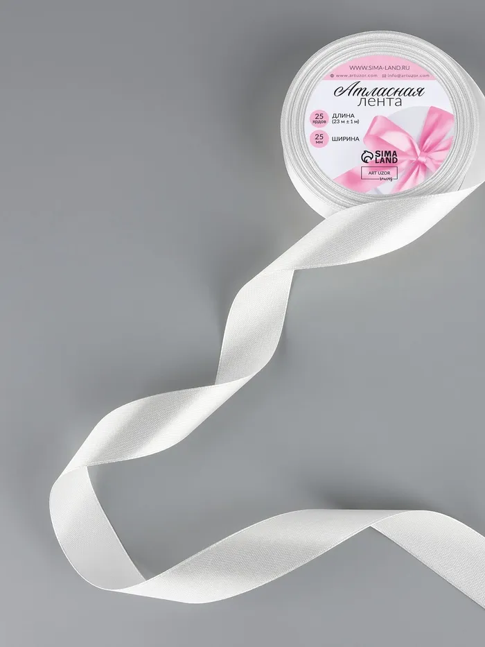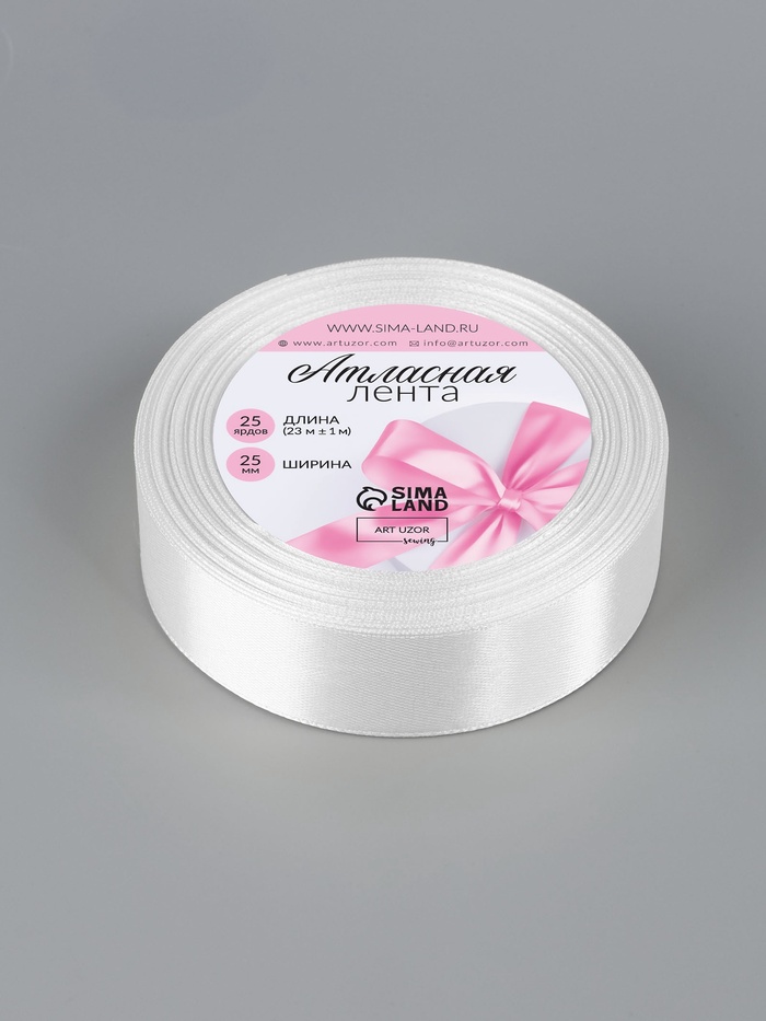 Лента атласная, 25 мм, 23±1 м, белая №01 — Характеристики