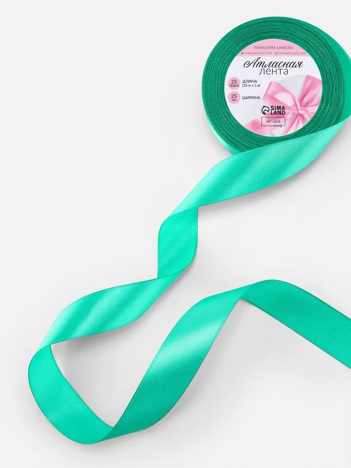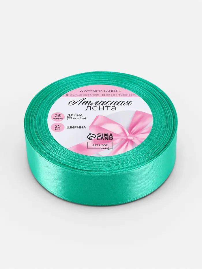 Лента атласная, 25 мм, 23±1 м, бирюзовая №54 — Характеристики
