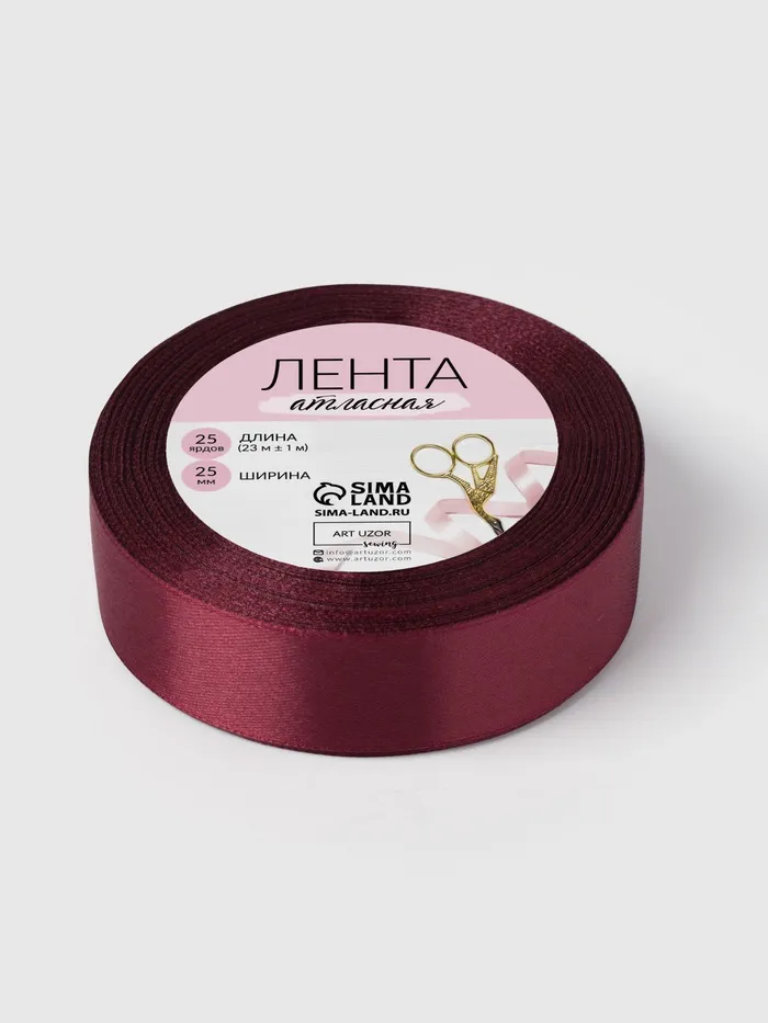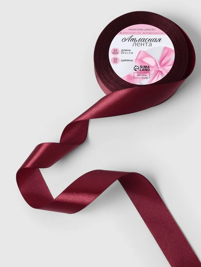 Лента атласная, 25 мм, 23±1 м, бордовая №165 — Характеристики