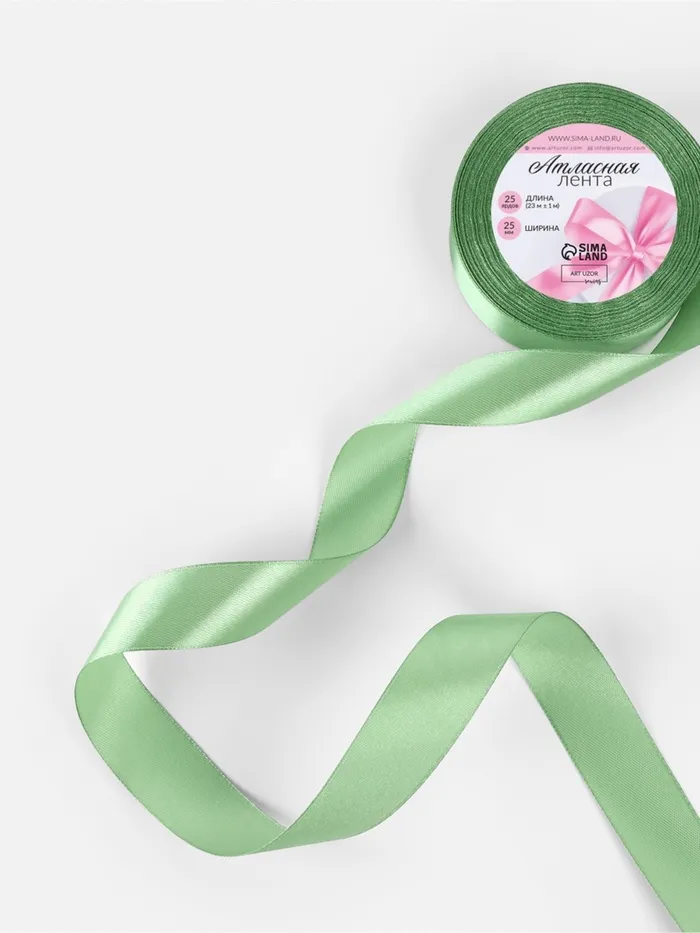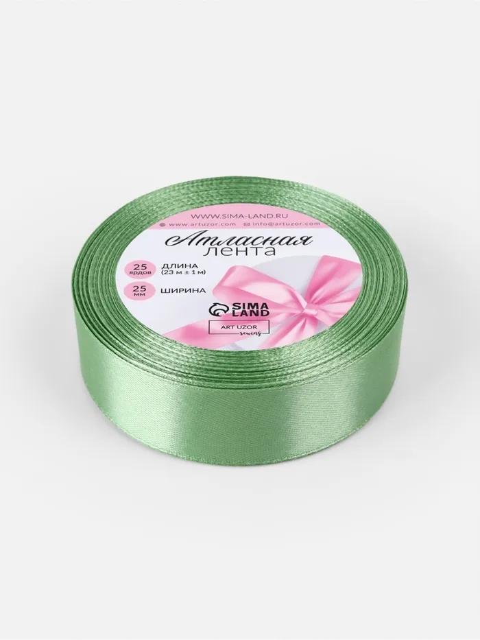 Лента атласная, 25 мм, 23±1 м, фисташковая №65 — Характеристики