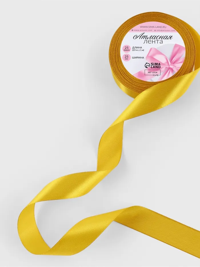 Лента атласная, 25 мм, 23±1 м, горчичная №М209 — Характеристики