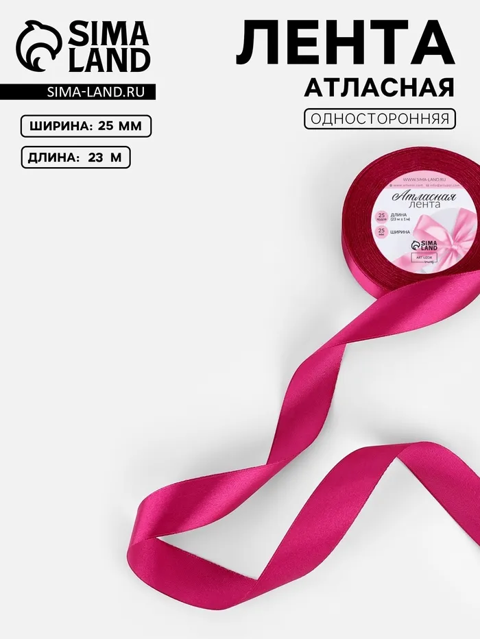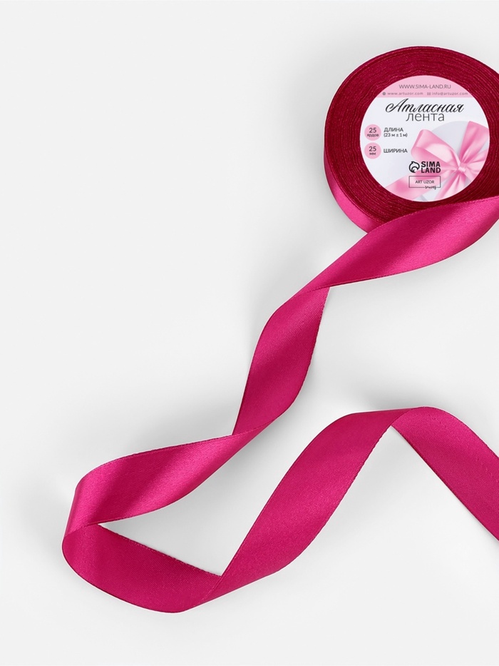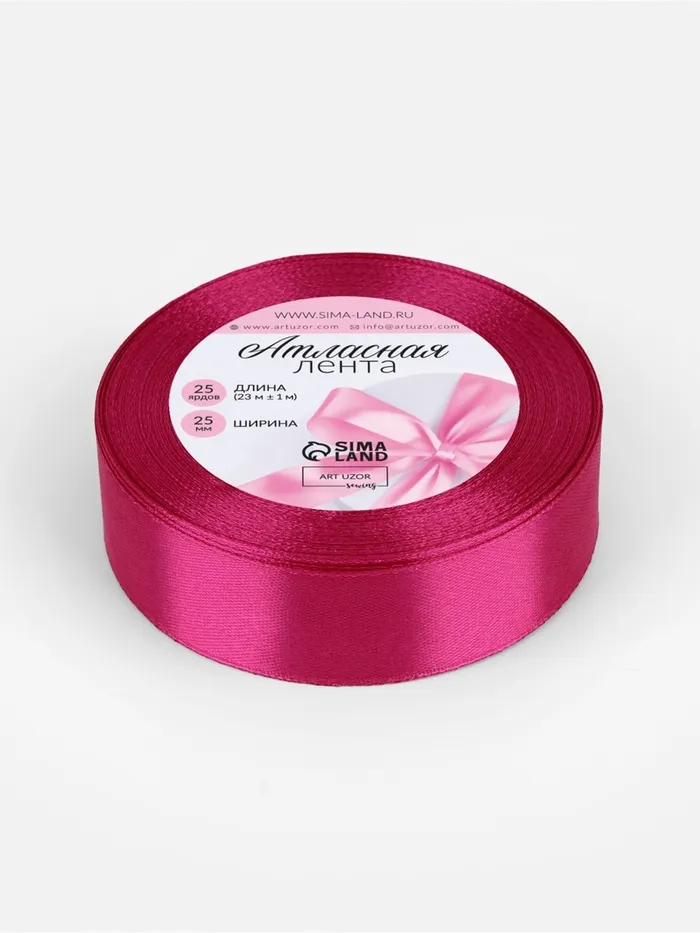 Лента атласная, 25 мм, 23±1 м, ярко-розовая №27 — Характеристики