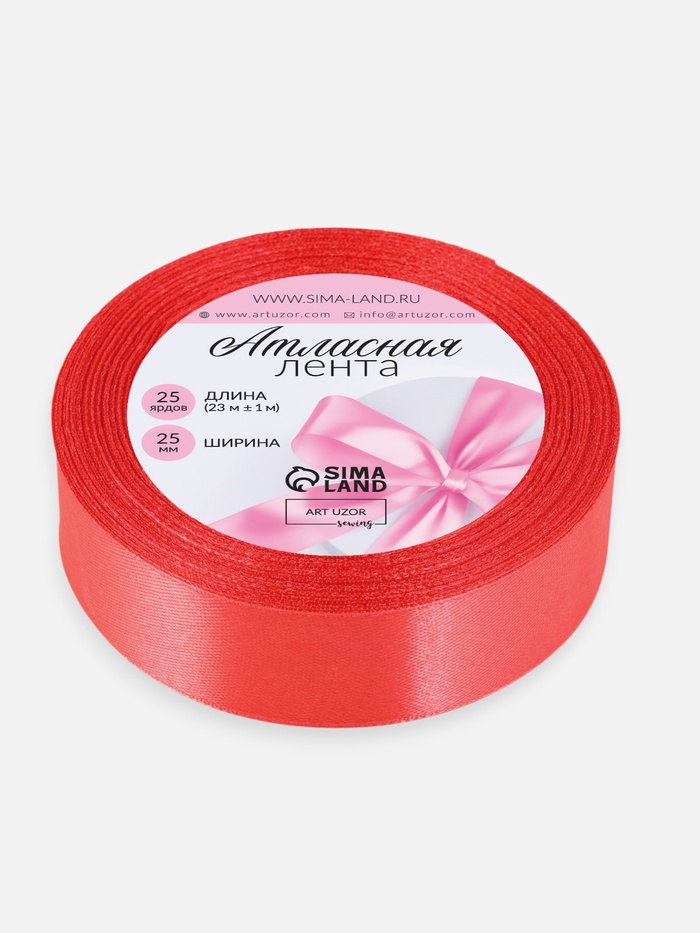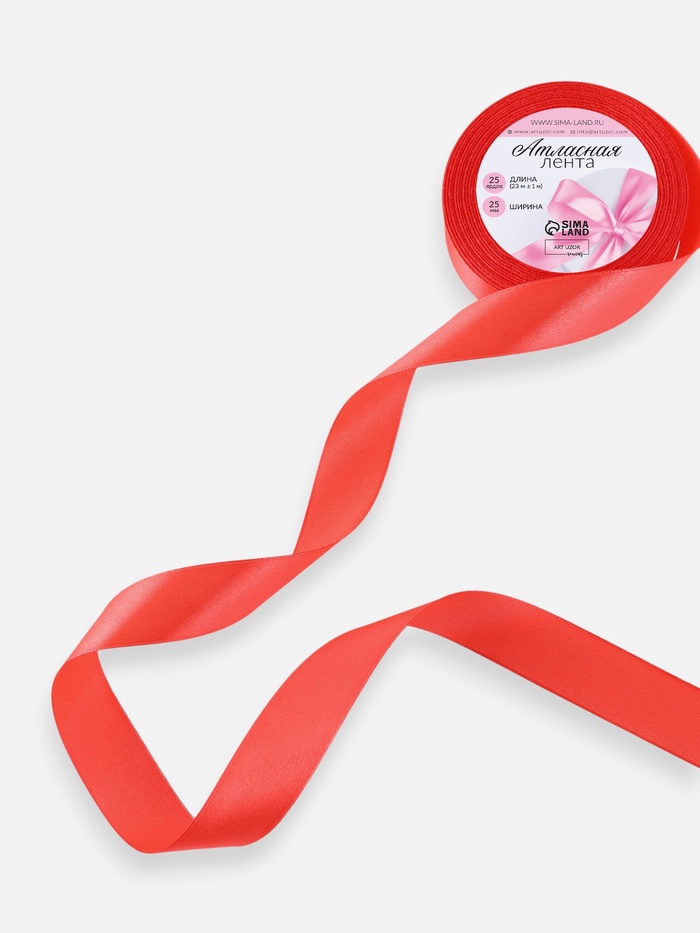 Лента атласная, 25 мм, 23±1 м, коралловая №129 — Характеристики