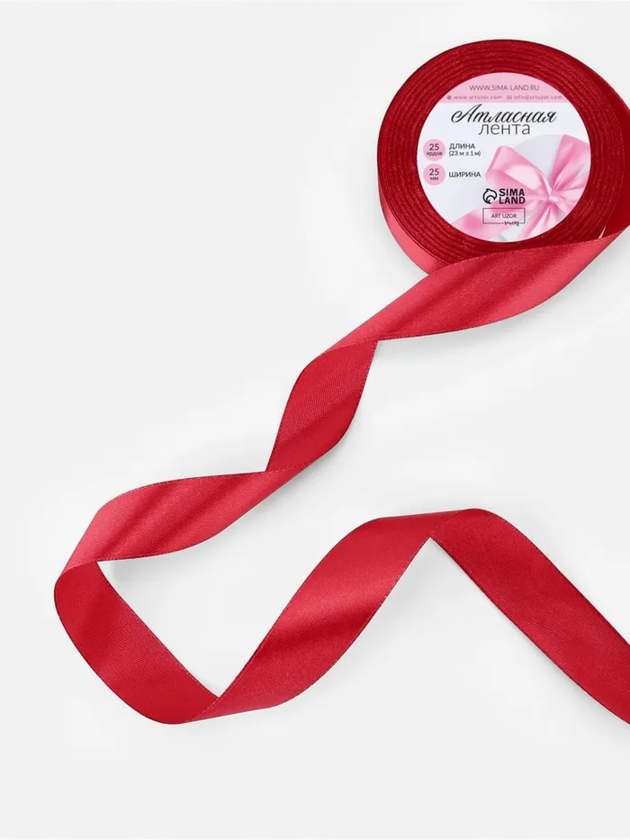 Лента атласная, 25 мм, 23±1 м, красная №33 — Характеристики