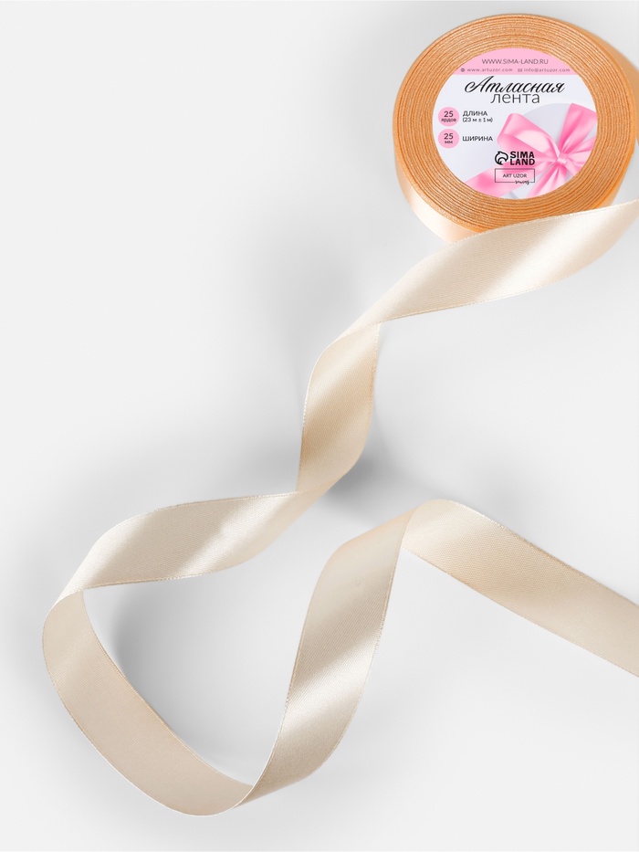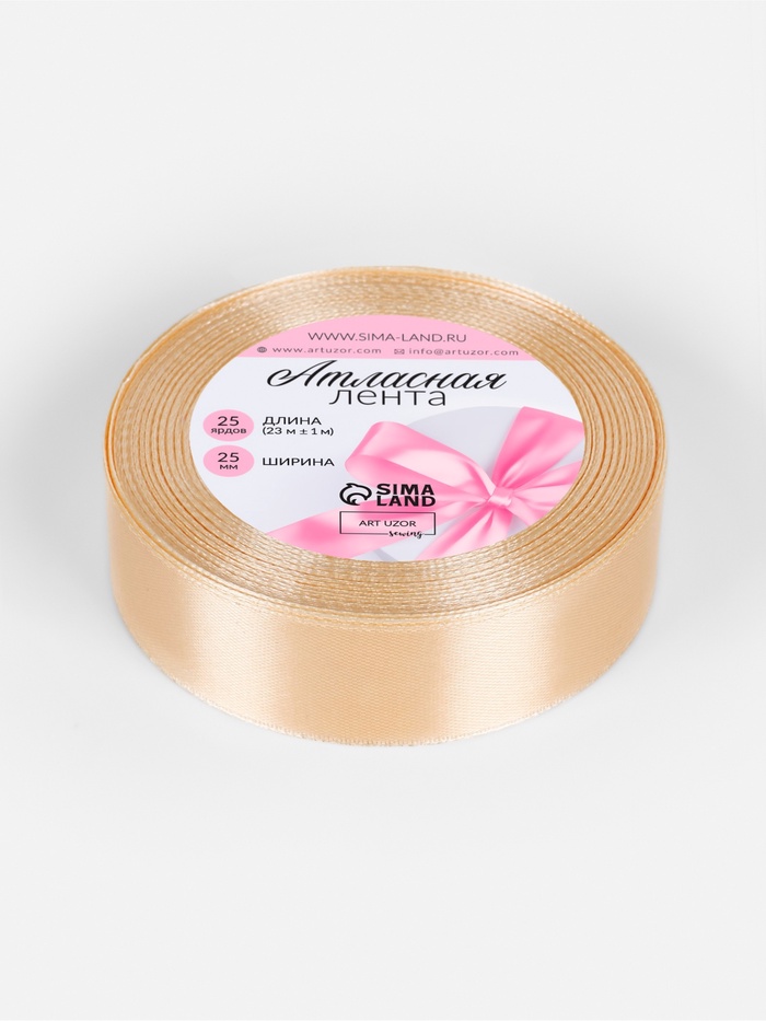 Лента атласная, 25 мм, 23±1 м, кремово-розовая №06 — Характеристики