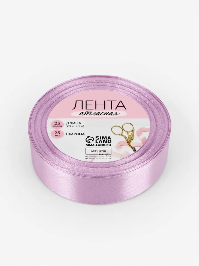 Лента атласная, 25 мм, 23±1 м, лавандовая №141 — Характеристики