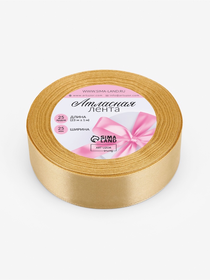 Лента атласная, 25 мм, 23±1 м, мягкий жёлтый №101 — Характеристики