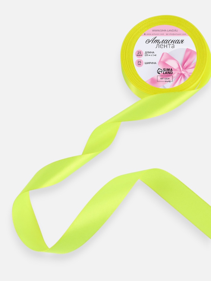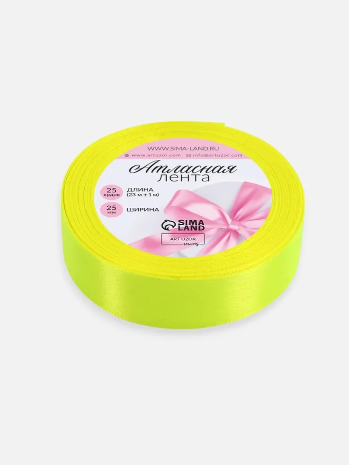 Лента атласная, 25 мм, 23±1 м, неоновая, жёлтая №58 — Характеристики
