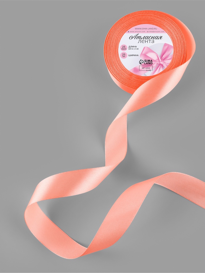 Атласная лента гладкая и приятная на ощупь. Используйте её для отделки изделий, украшения подарков, свадебного оформления, а также в техниках скрапбукинг и канзаши.