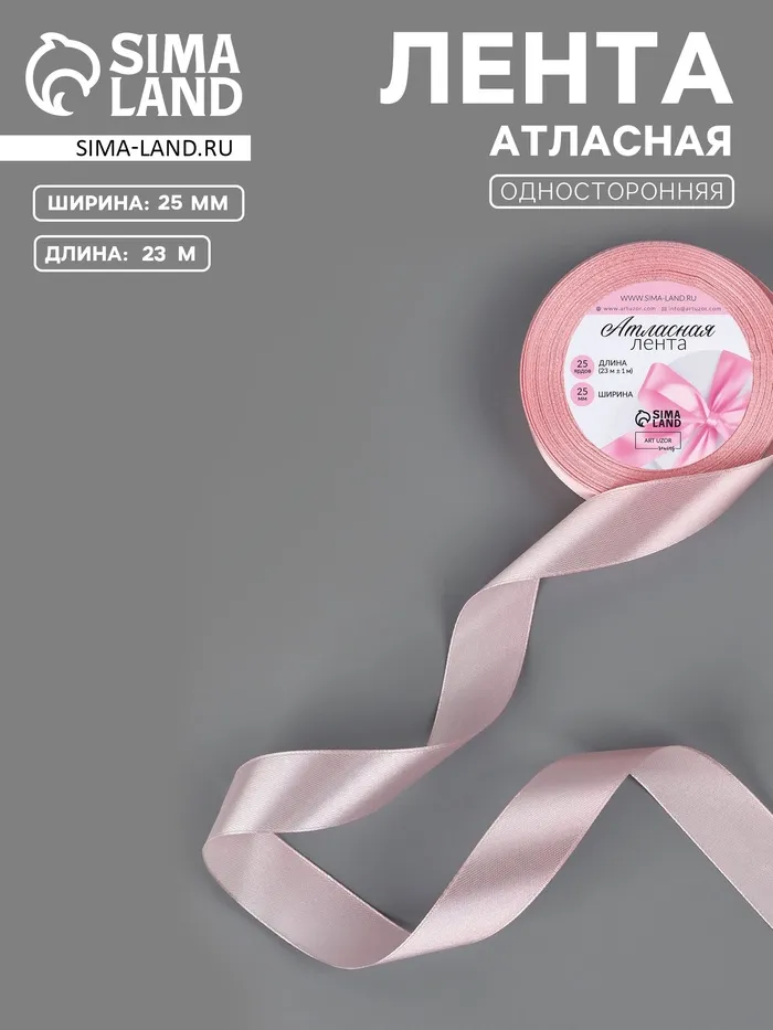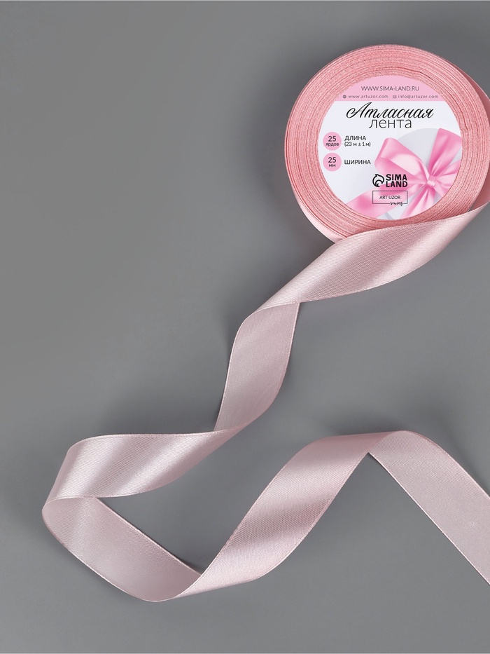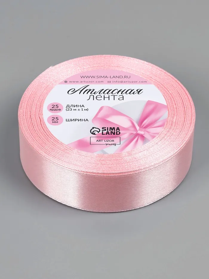 Лента атласная, 25 мм, 23±1 м, розовая №277 — Характеристики