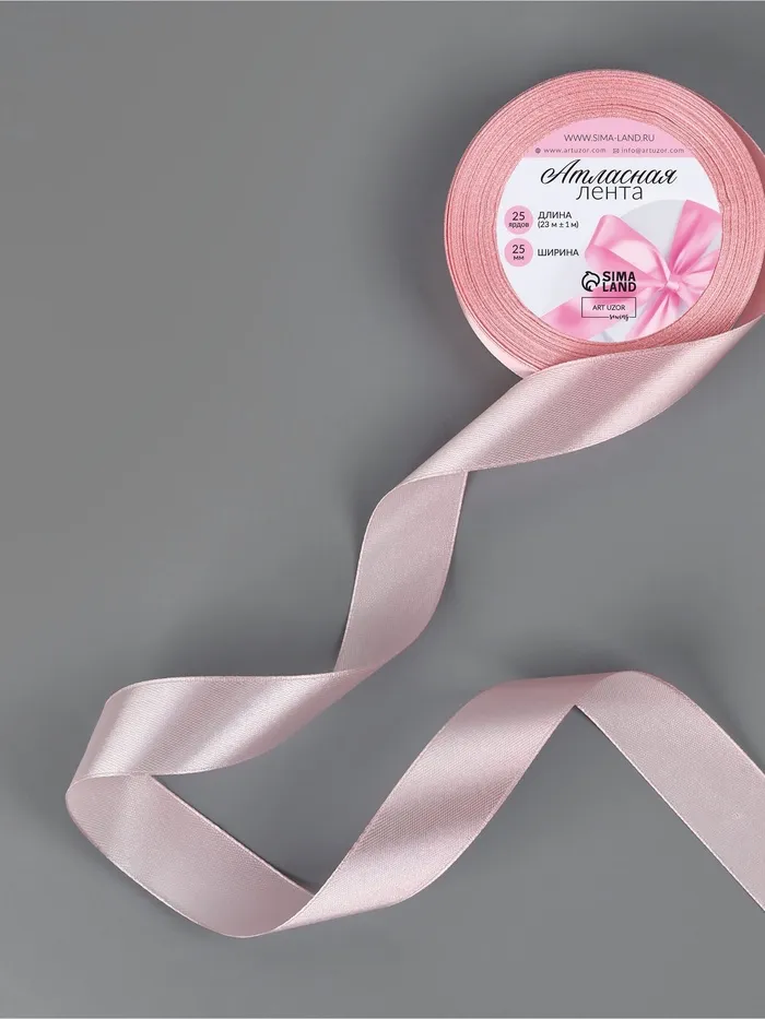 Атласная лента гладкая и приятная на ощупь. Используйте её для отделки изделий, украшения подарков, свадебного оформления, а также в техниках скрапбукинг и канзаши.