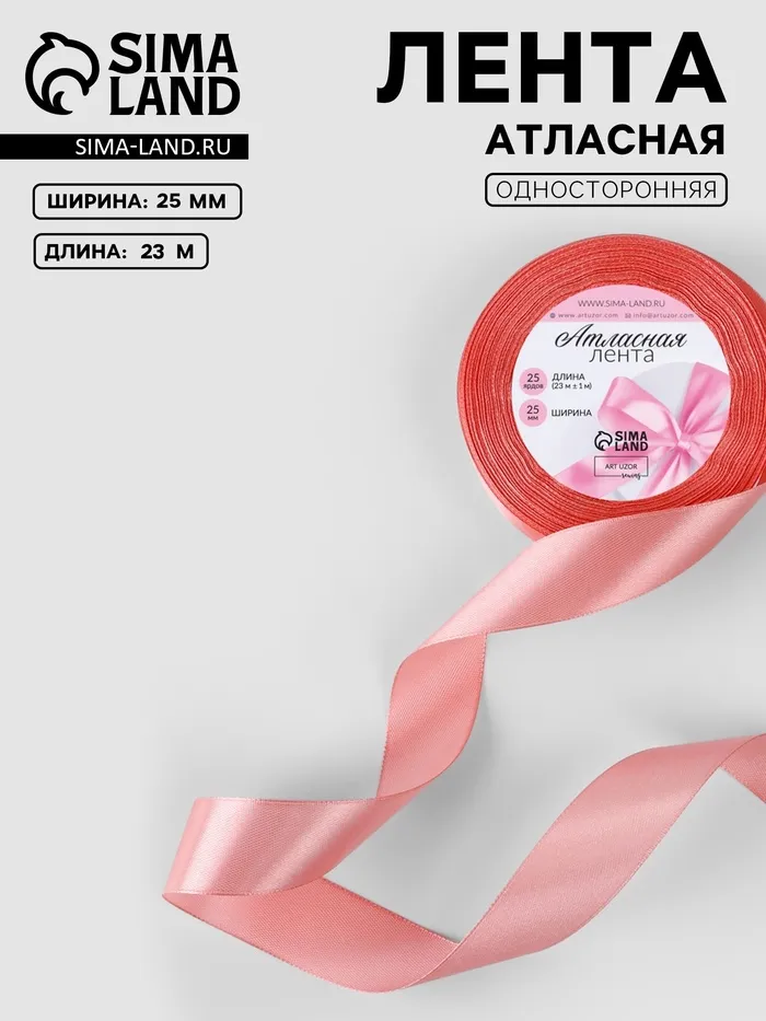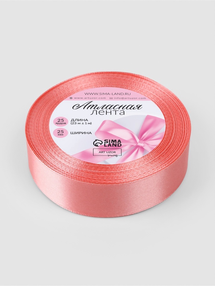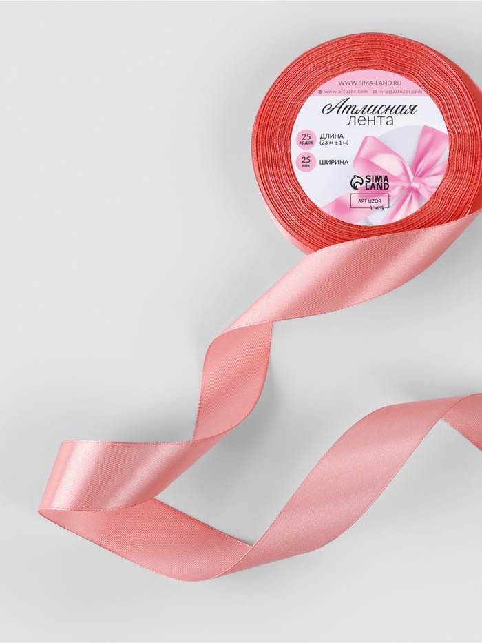 Лента атласная, 25 мм, 23±1 м, розовая №66 — Характеристики