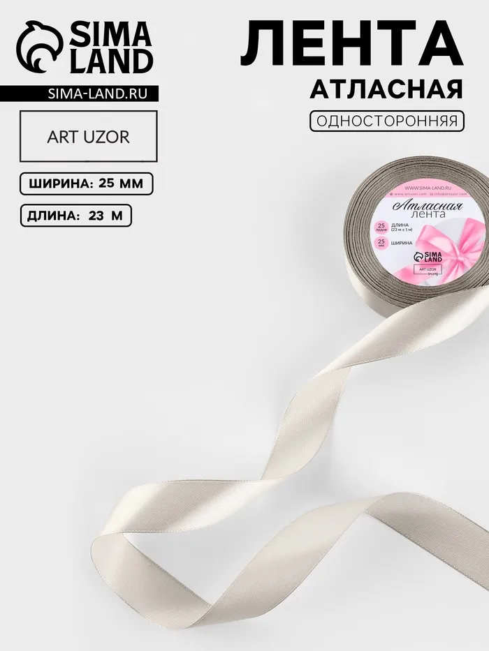 Лента атласная, 25 мм, 23±1 м, светло-серая №179 — Характеристики
