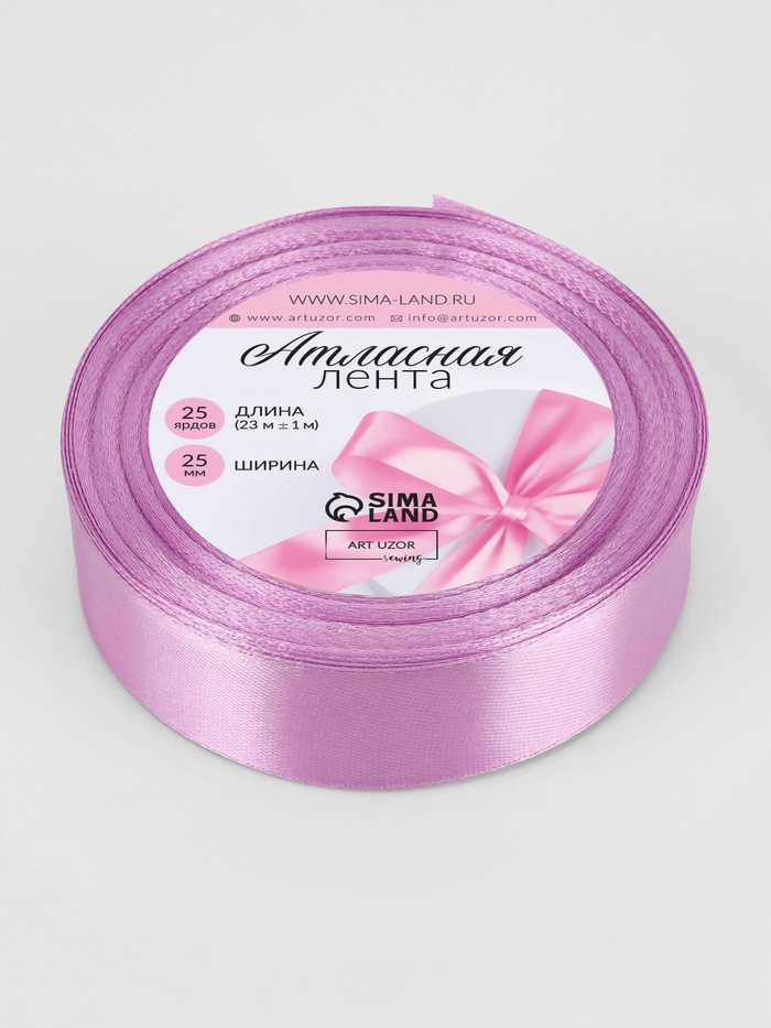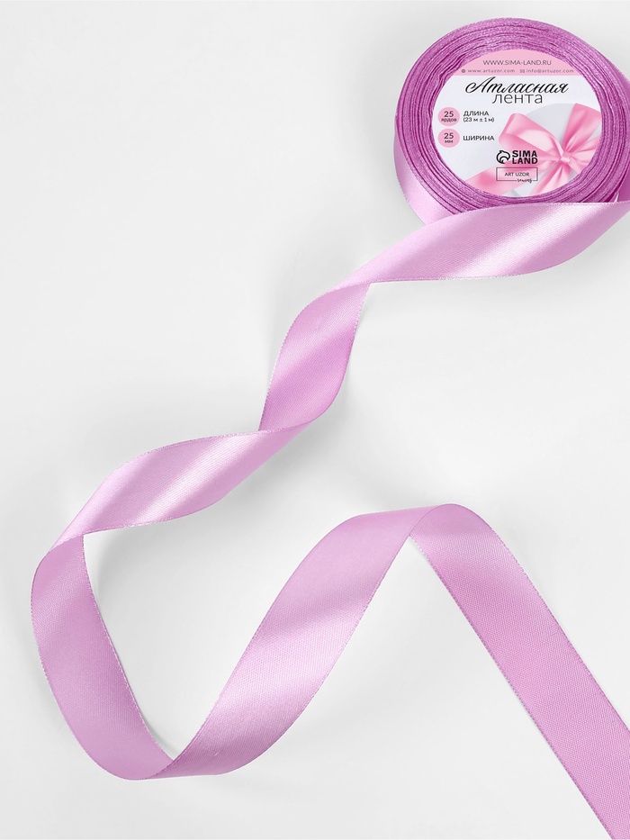 Лента атласная, 25 мм, 23±1 м, светло-сиреневая — Характеристики