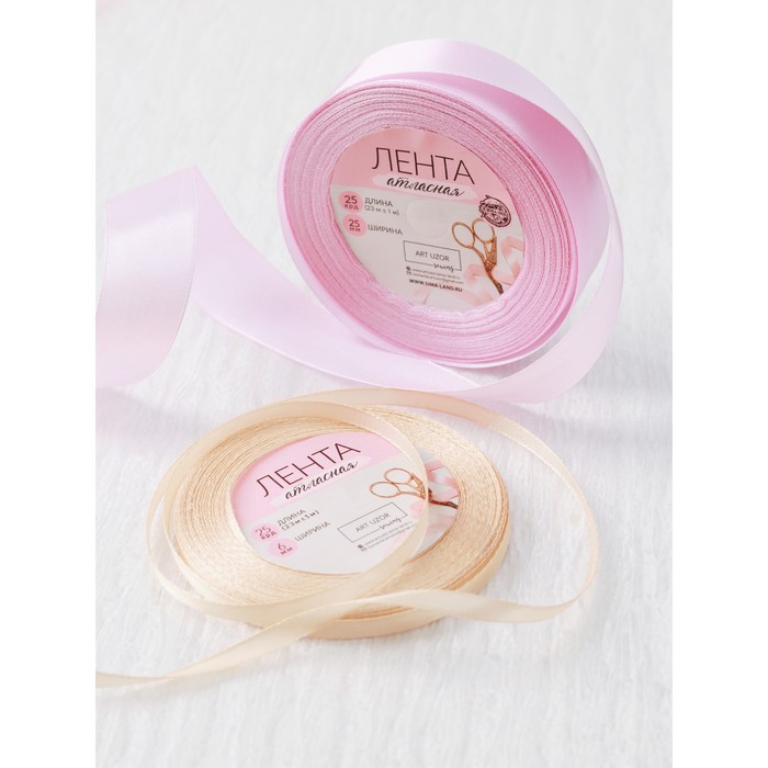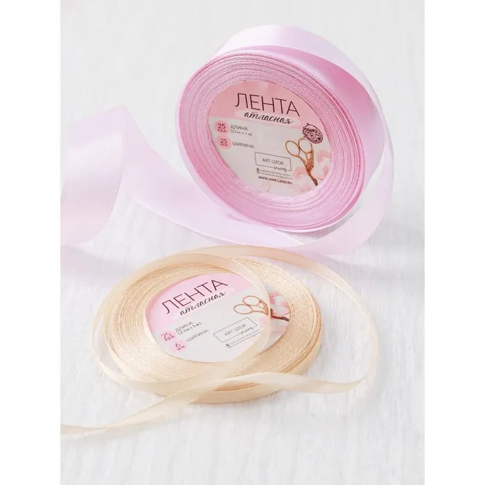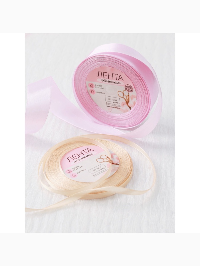 Атласная лента гладкая и приятная на ощупь. Используйте её для отделки изделий, украшения подарков, свадебного оформления, а также в техниках скрапбукинг и канзаши.