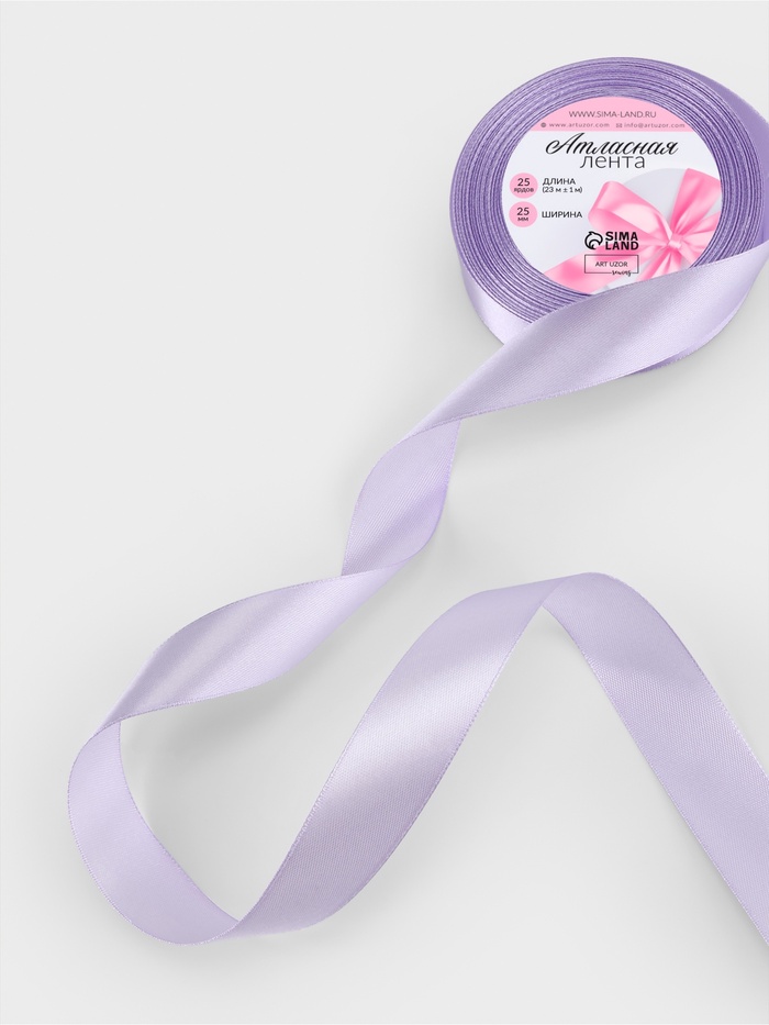 Лента атласная, 25 мм, 23±1 м, светло-сиреневая №290 — Характеристики