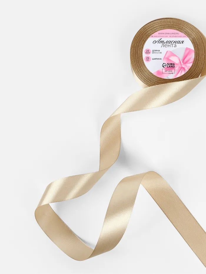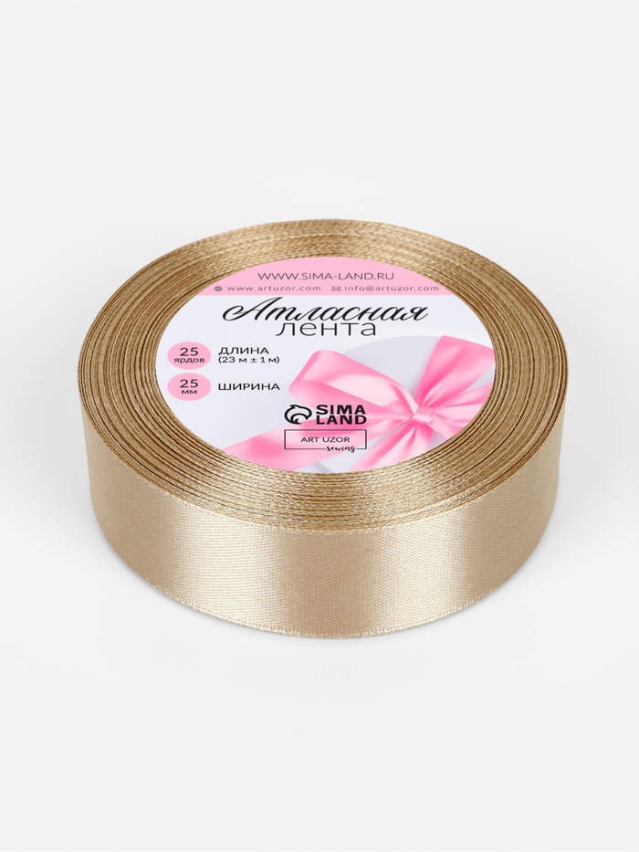 Лента атласная, 25 мм, 23±1 м, тёмно-кремовая — Характеристики