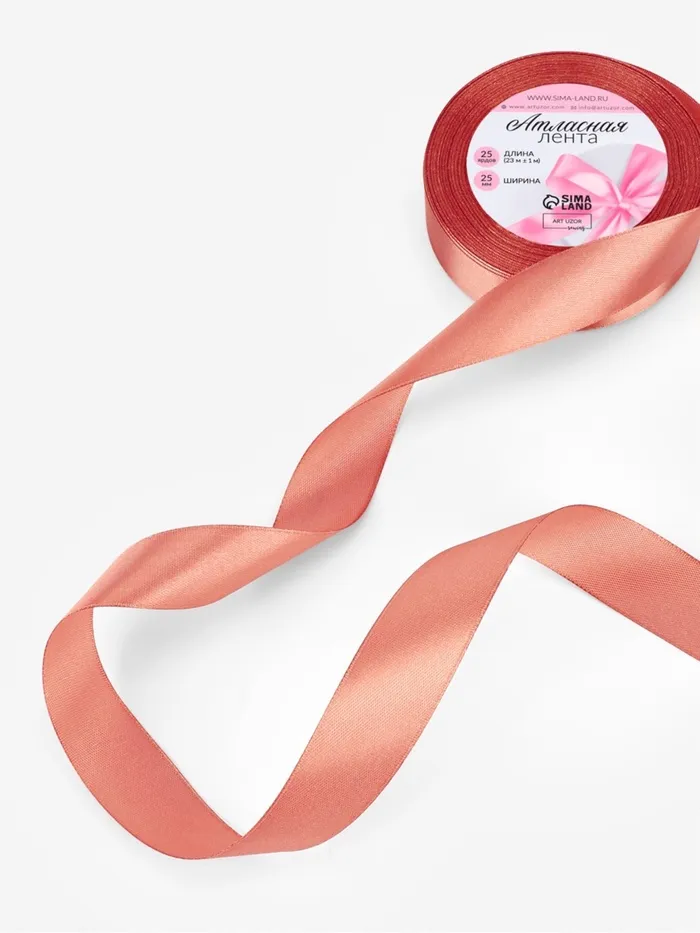 Атласная лента гладкая и приятная на ощупь. Используйте её для отделки изделий, украшения подарков, свадебного оформления, а также в техниках скрапбукинг и канзаши.